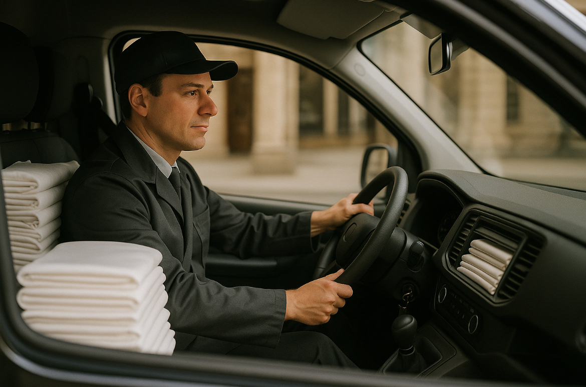 - 『必要な時に必要な分だけ』リネンを配達~回収いたします。(7日~10日/回)